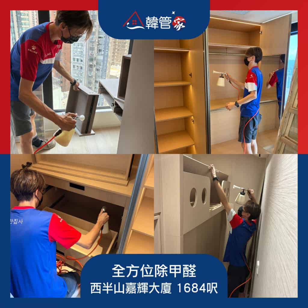 深入處理每個釋放甲醛的位置,包括傢私、天花、燈糟、牆壁、門及窗簾等,並拆出所有櫃桶,處理櫃桶底部及櫃籠內部等甲醛的泉源。